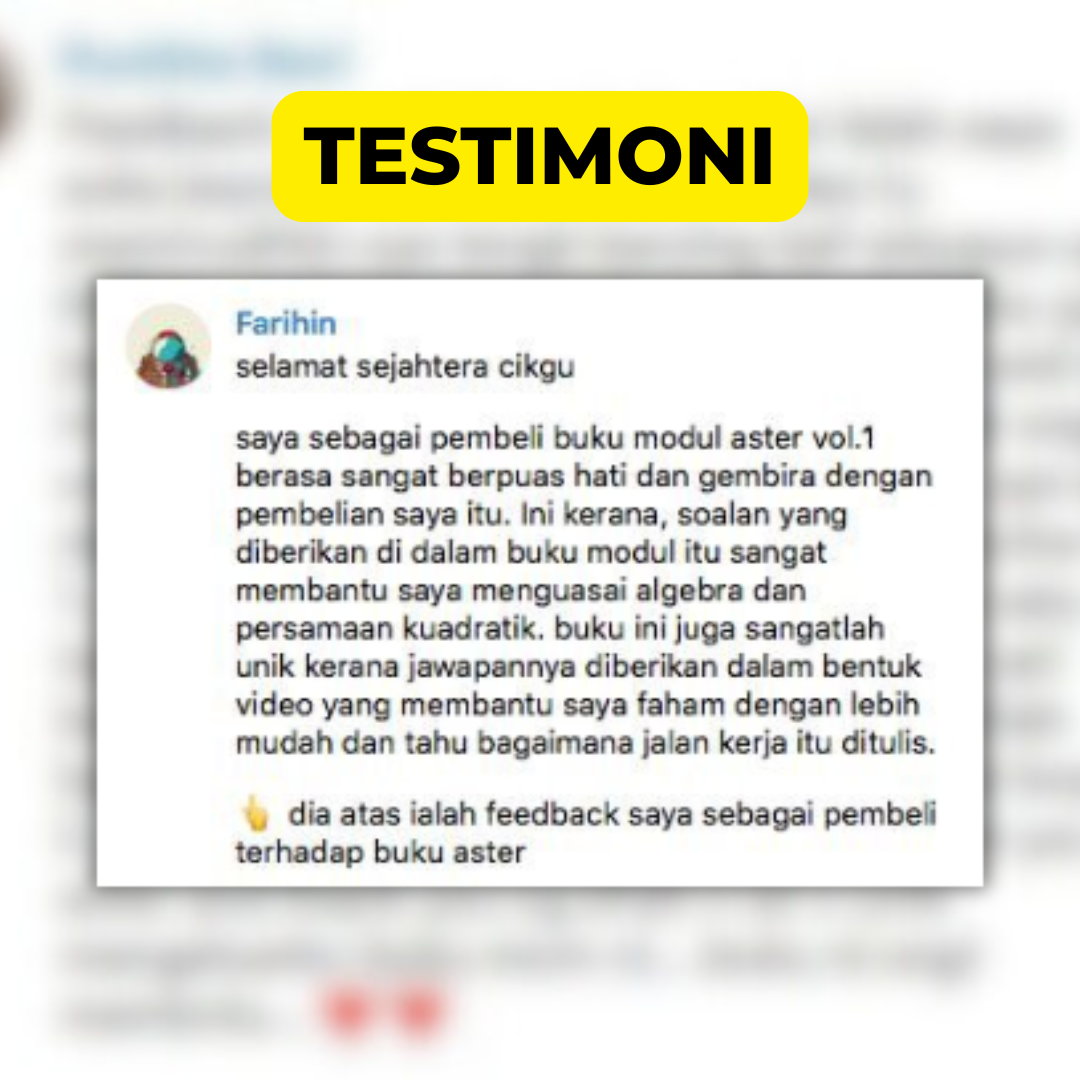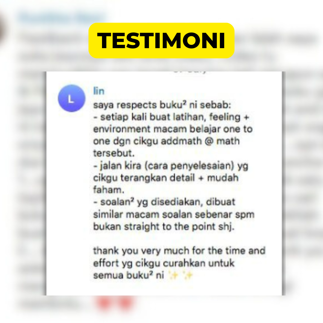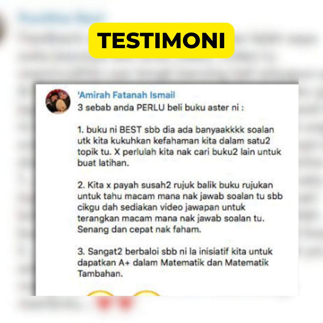 Selepas 400,000 unit terjual buku ini, kami belum terima feedback ibu bapa, markah Matematik pelajar TIDAK meningkat selepas siap buku.
