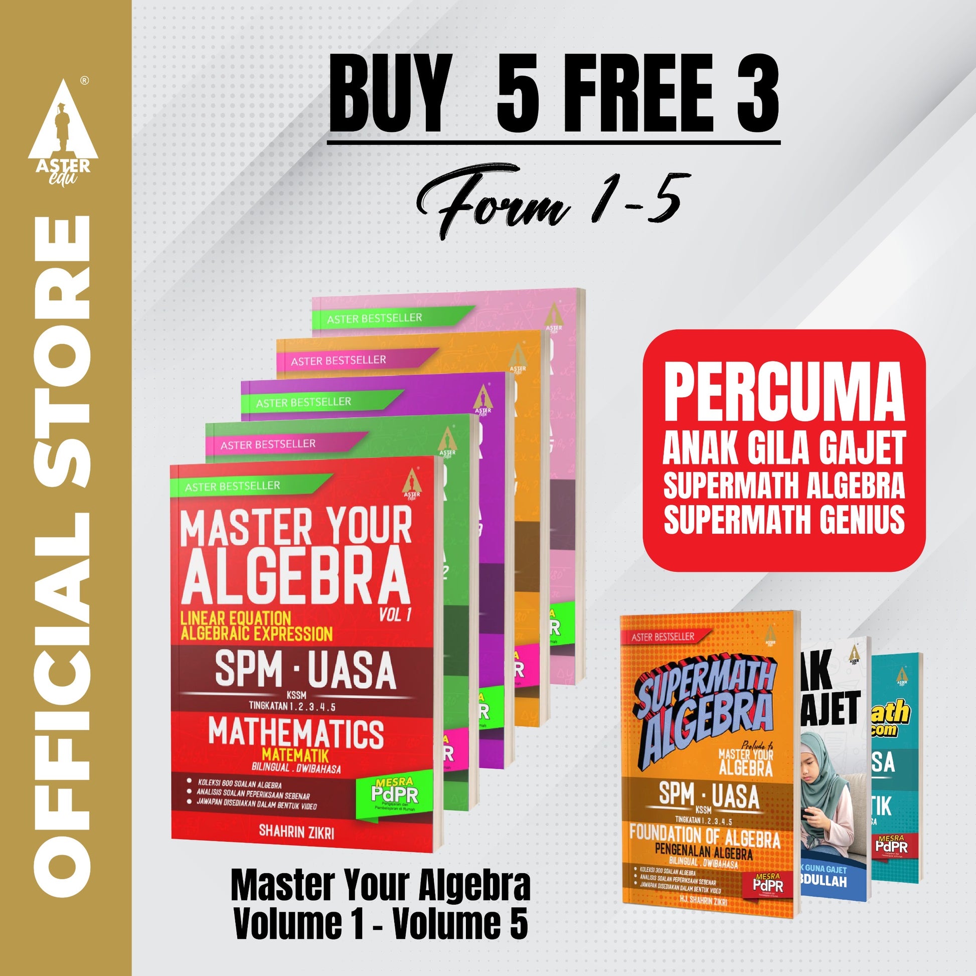 ▪️ 5 buah buku MASTER YOUR ALGEBRA lengkap (Volume 1 – Volume 5)