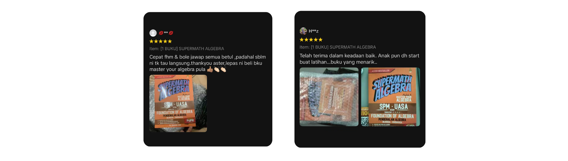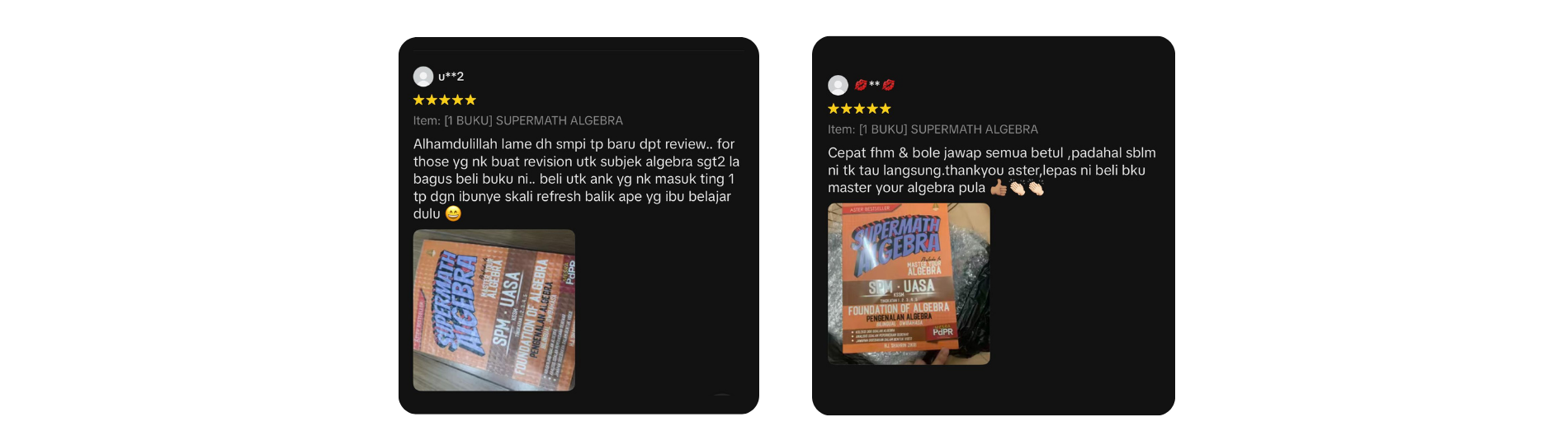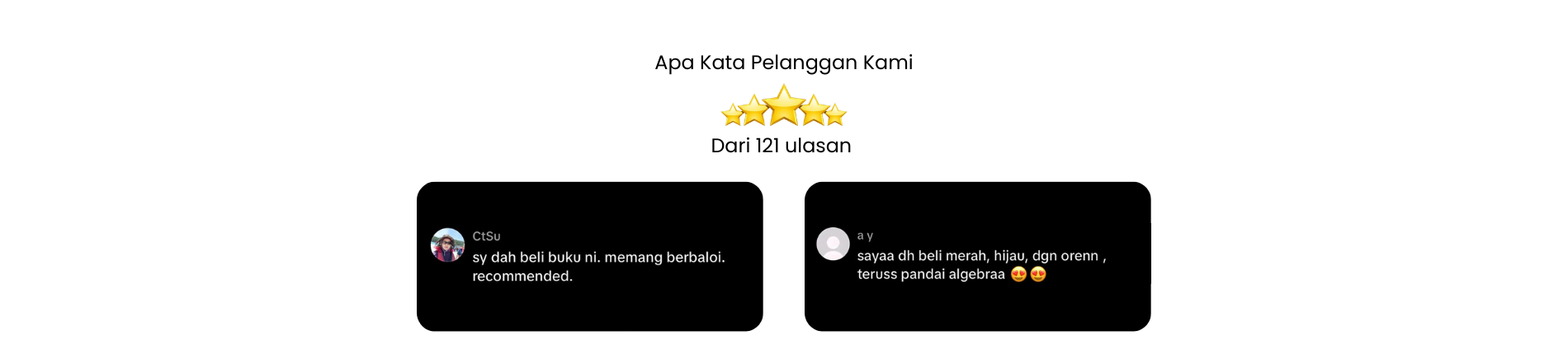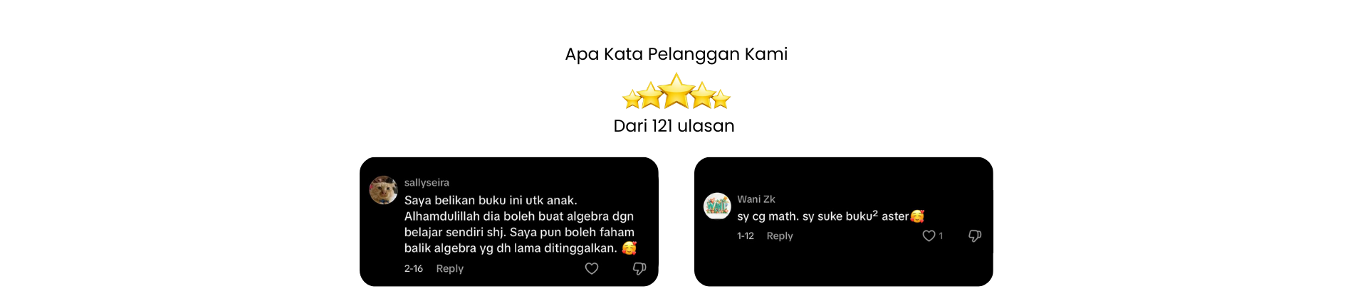 Di Aster, semua buku & modul kami fokus kuat pada Algebra. Asas yang kukuh bawa kepada keputusan yang cemerlang.